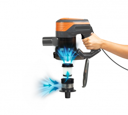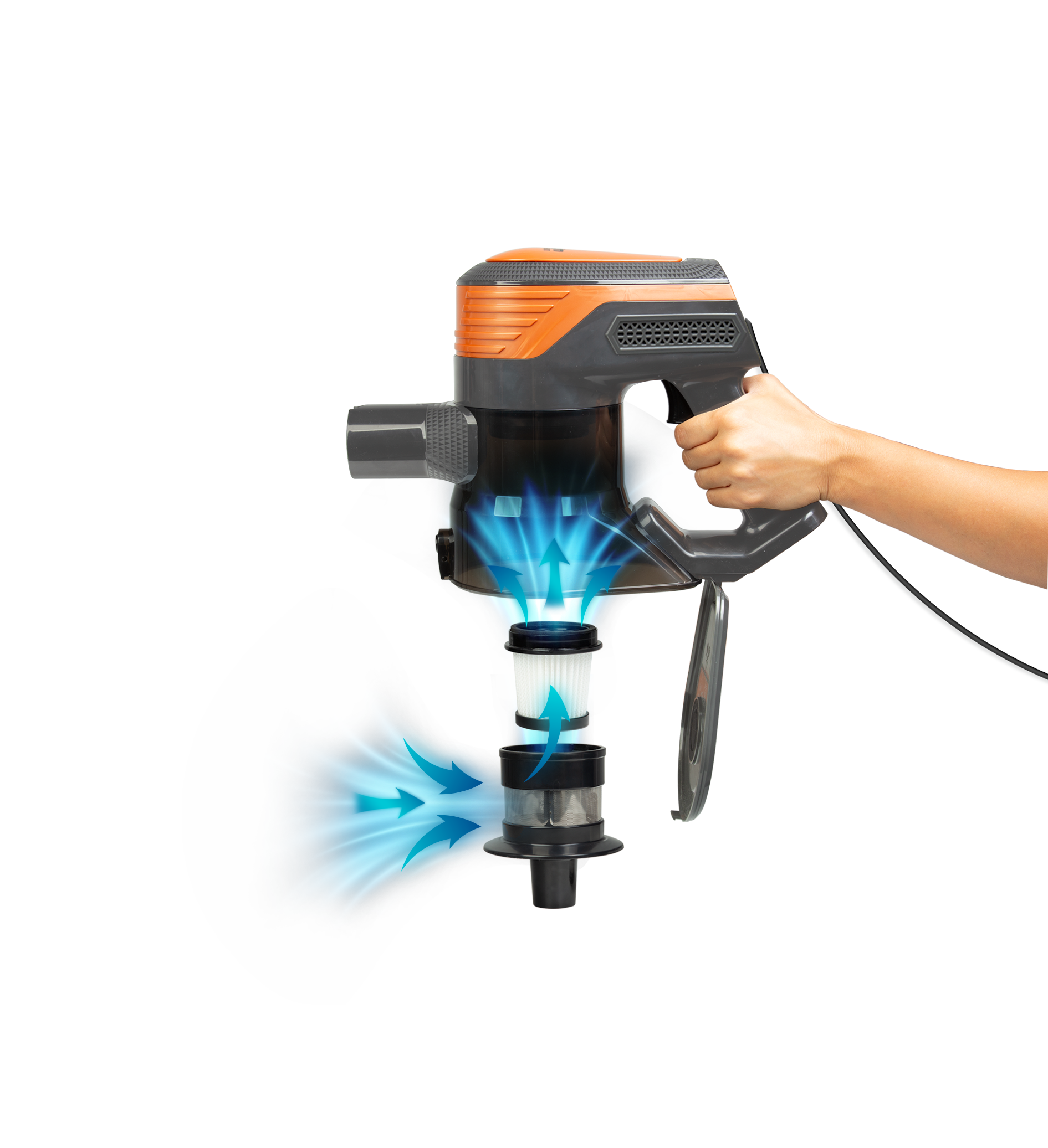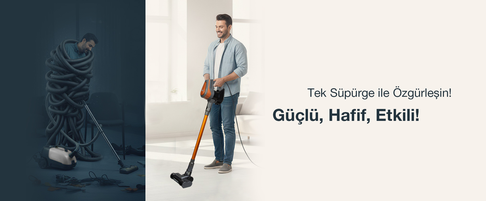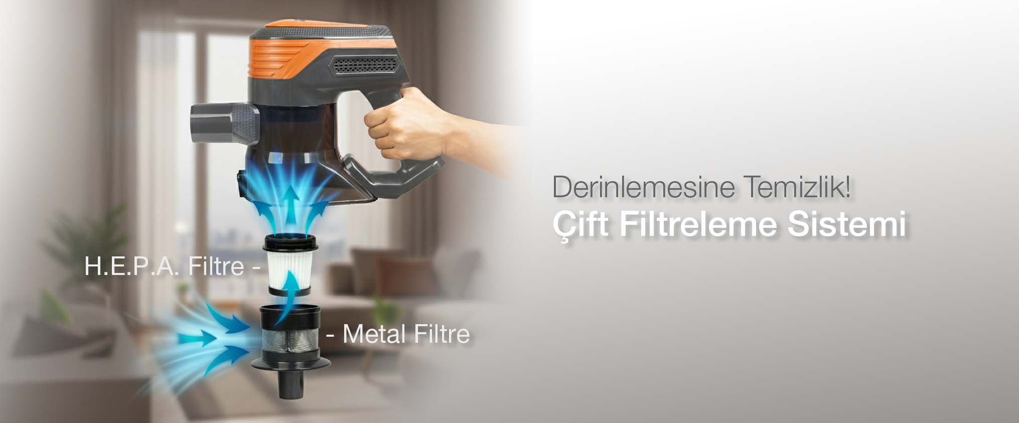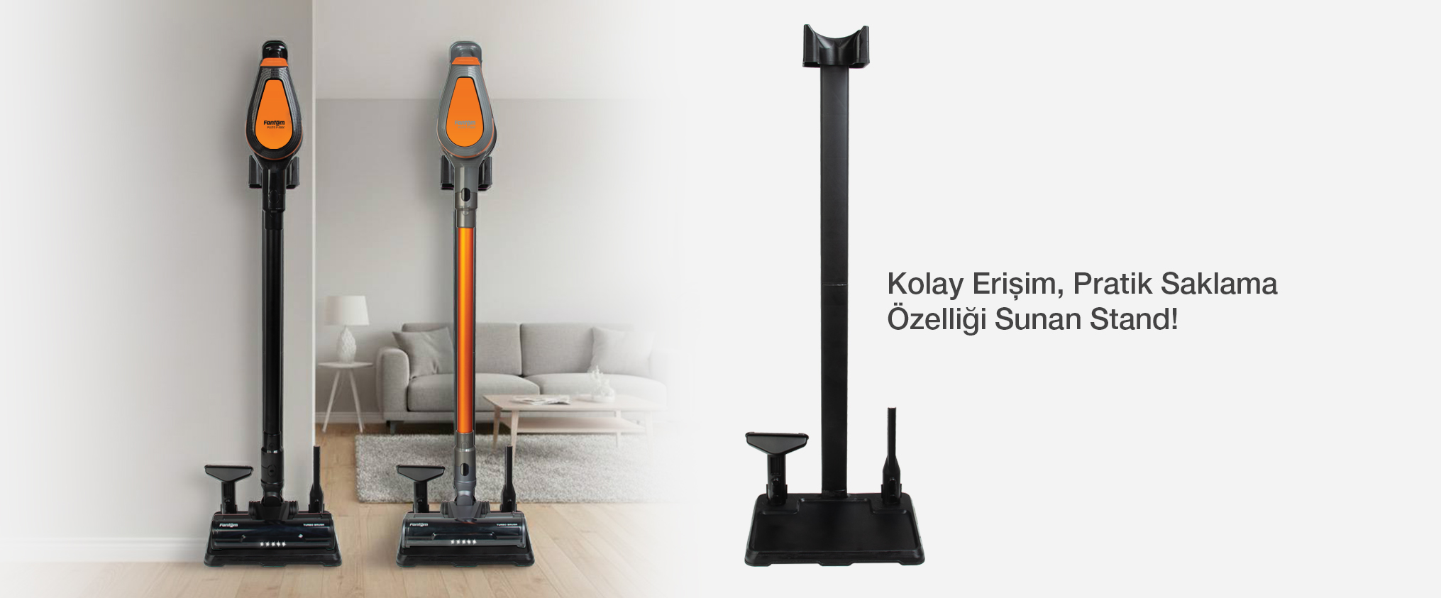 Ergonomik tasarımı, pratik ve torbasız kullanımı sayesinde temizlik artık çok daha kolay ve zahmetsiz. Temizlenebilir H.E.P.A filtre, yerdeki en ince toz partiküllerini yakalayarak hazne içinde biriken tozların dışarı çıkmasını engeller ve evinizde daha hijyenik bir hava sağlar. Gelişmiş cyclone teknolojisine sahip hazne, tüm tozları yüksek emiş gücüyle hapsederek performanstan ödün vermeden temizlik yapmanızı sağlar. Üstelik tek tuşla kolay boşaltma özelliği sayesinde temizlik sonrasında zaman kaybetmeden hazneyi boşaltabilirsiniz. Güçlü motorlu turbo fırçalı süpürge başlığı, halılardan sert zeminlere kadar tüm yüzeylerde etkili bir temizlik sunar ve evinizin her köşesinde mükemmel sonuçlar elde etmenize yardımcı olur. Kompakt stand tasarımıyla her zaman elinizin altında, her an kullanıma hazır!