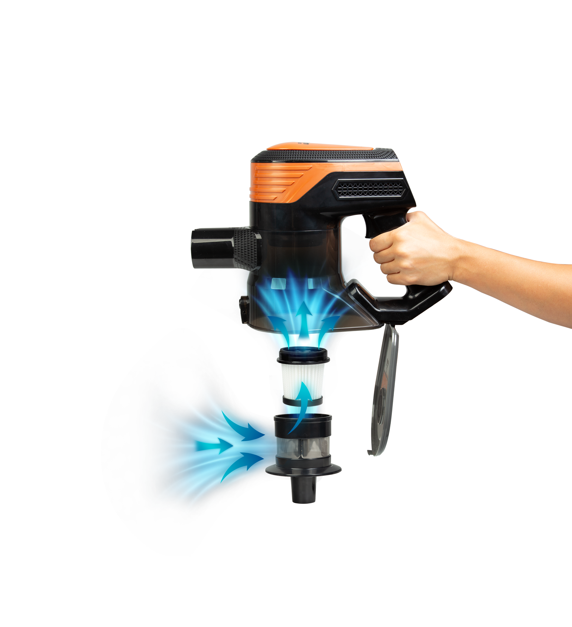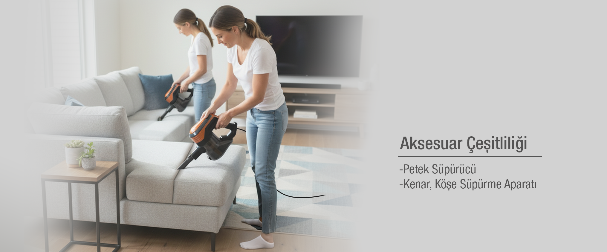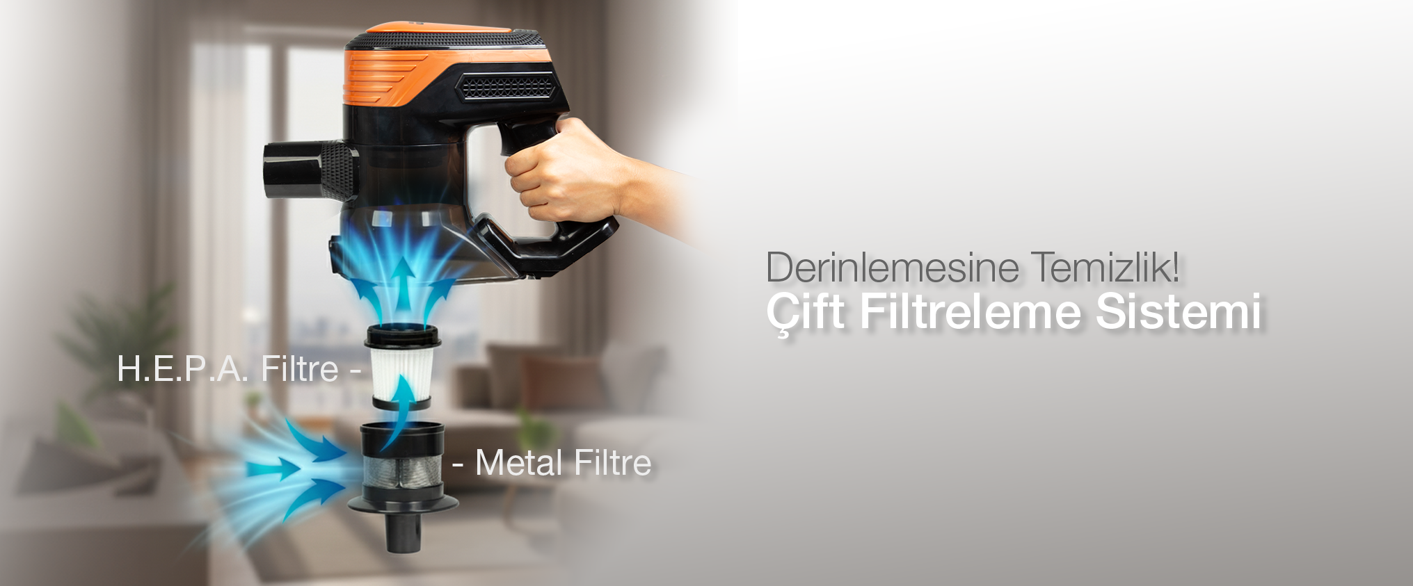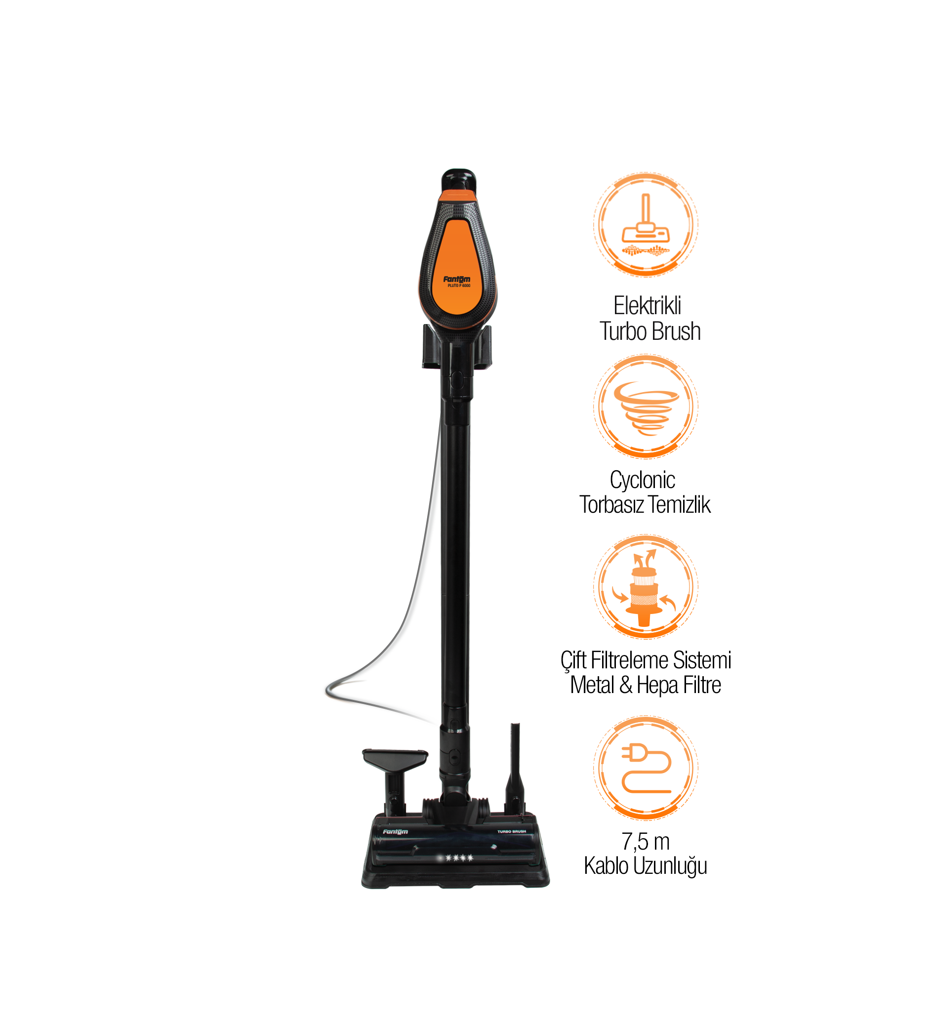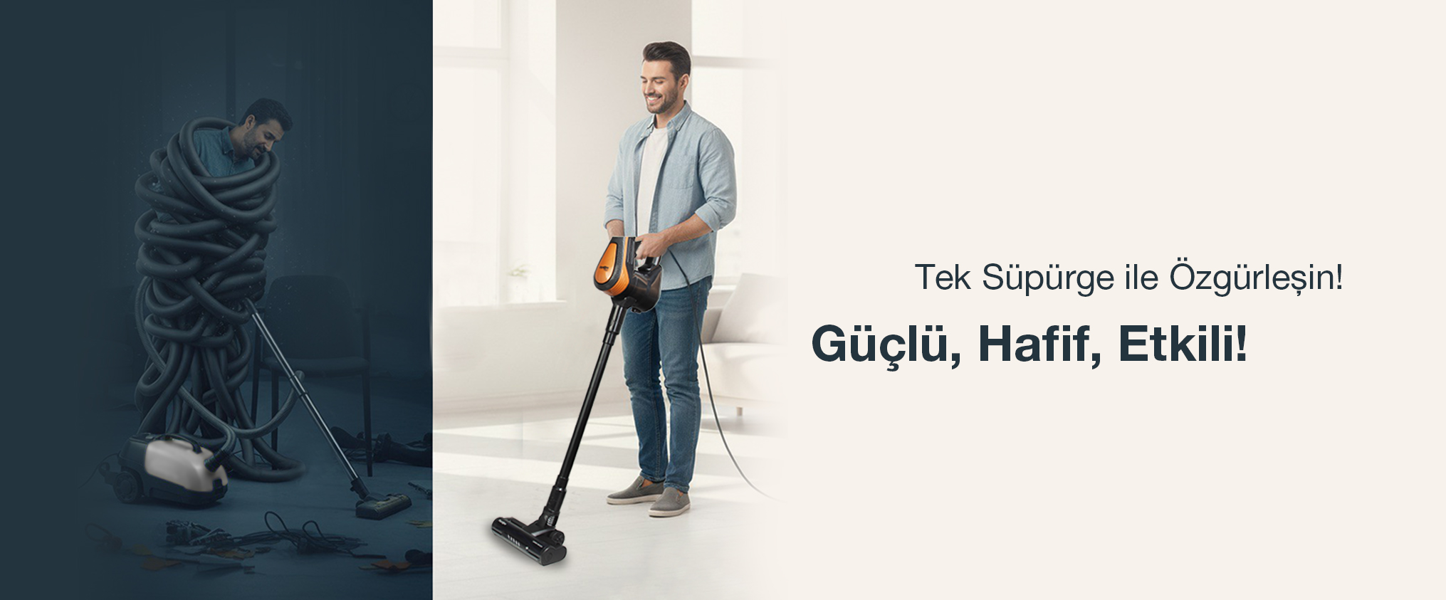 Ergonomik tasarımı, pratik ve torbasız kullanımı sayesinde temizlik artık çok daha kolay ve zahmetsiz. Temizlenebilir H.E.P.A filtre, yerdeki en ince toz partiküllerini yakalayarak hazne içinde biriken tozların dışarı çıkmasını engeller ve evinizde daha hijyenik bir hava sağlar. Gelişmiş cyclone teknolojisine sahip hazne, tüm tozları yüksek emiş gücüyle hapsederek performanstan ödün vermeden temizlik yapmanızı sağlar. Üstelik tek tuşla kolay boşaltma özelliği sayesinde temizlik sonrasında zaman kaybetmeden hazneyi boşaltabilirsiniz. Güçlü motorlu turbo fırçalı süpürge başlığı, halılardan sert zeminlere kadar tüm yüzeylerde etkili bir temizlik sunar ve evinizin her köşesinde mükemmel sonuçlar elde etmenize yardımcı olur. Kompakt stand tasarımıyla her zaman elinizin altında, her an kullanıma hazır!