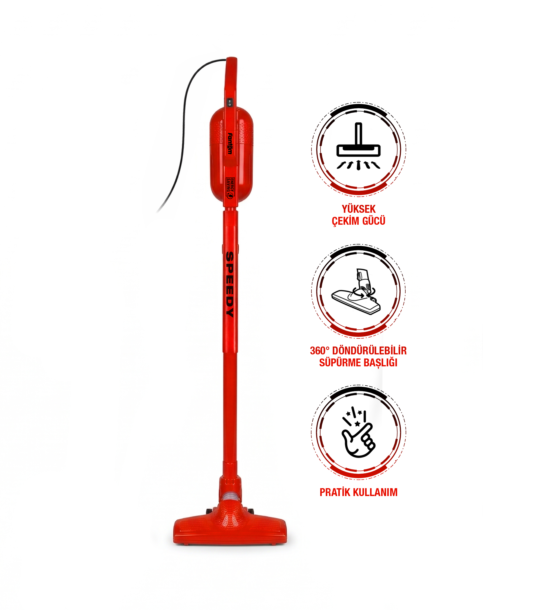 Torbasız ve pratik kullanımı, yüksek emis gücü ile temizliğin kolay ve çabuk olmasını sağlar. Ayrılabilen gövdesi sayesinde temizlenmesi zor alanlarda çok kullanıslıdır. Motor gövdesinin üst kısımda olması, tavan ve koltuk altı gibi yerlerin temizliğinde avantaj sağlar.